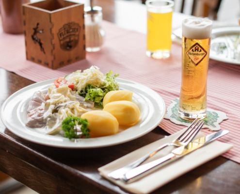 Essen & Trinken, StartseiteHeringe in hausgemachter Sahnesauce mit Zwiebeln und Äpfeln dazu gibt’s Salzkartoffeln